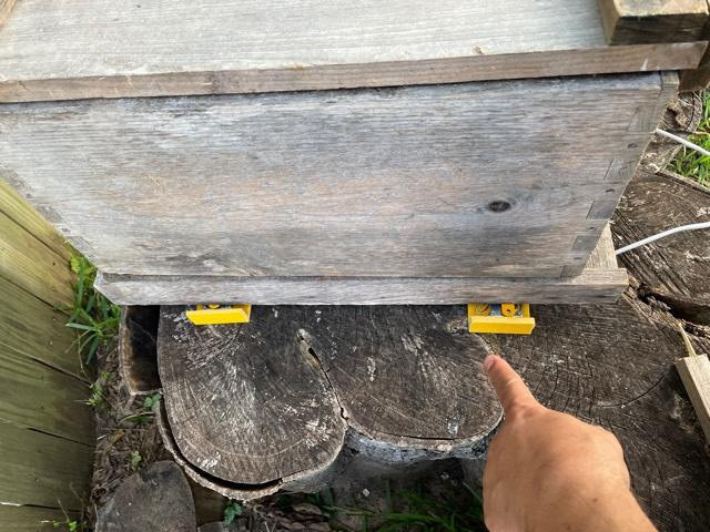 1. Setup your Hive’s base so they are above ground and leveled or tilted slightly forward so rainwater drains out from the hive and not into it.